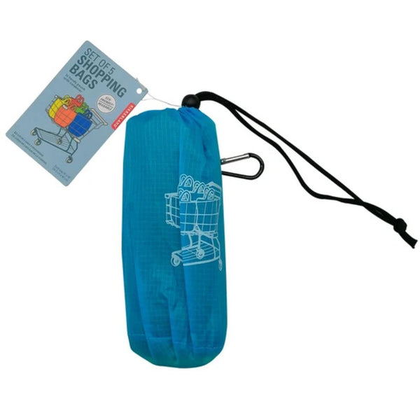 Make your grocery trips eco-friendly and convenient with the Kikkerland Set of 5 Colorful Reusable Shopping Bags in Carry Pouch with Carabiner. Say goodbye to single-use plastic bags and hello to these durable and vibrant reusable bags. Each set includes five reusable bags crafted from sturdy ripstop nylon, ensuring they can handle heavy groceries trip after tripEco-Friendly & Durable: Five reusable bags made of sturdy 190T polyester ripstop nylon, replacing single-use plastic bags for sustainable shopping.