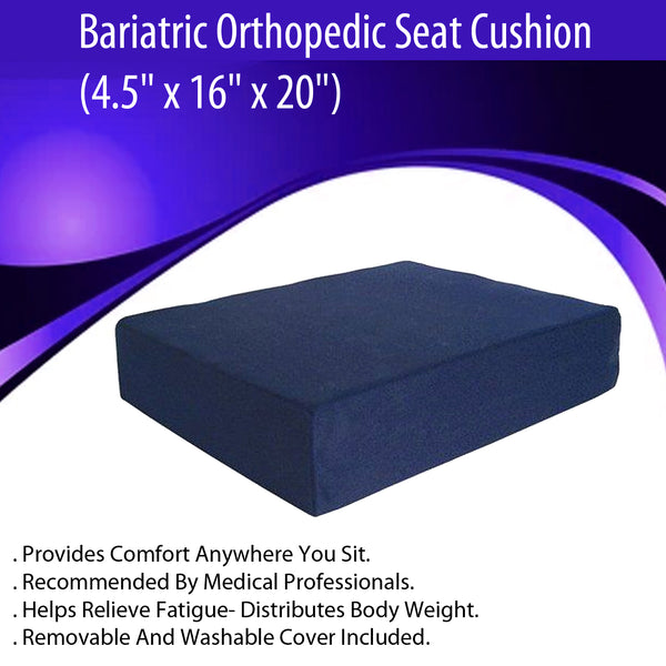 - The Bariatric Orthopedic Seat Cushion is designed to provide exceptional support and comfort for individuals seeking relief while seated. With dimensions of 4.5" x 16" x 20", this cushion effectively distributes weight, reducing pressure on the hips and lower back for enhanced sitting experiences.Superior Comfort: The Orthopedic Seat Cushion (4.5" x 16" x 20") provides enhanced pressure relief and weight distribution.