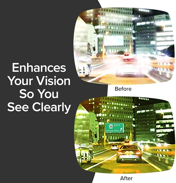 - Battle Vision Night Vision Sunglasses 2-Pack – Get double the protection with two pairs of HD polarized, anti-glare glasses. Designed to reduce headlight glare and enhance clarity for safer night driving, rain, and low-light conditions. Perfect for keeping one in each car or sharing with a family member.Night Driving Made Safer: Specially designed yellow-tinted lenses reduce glare from oncoming headlights and streetlights for clearer nighttime visibility.
