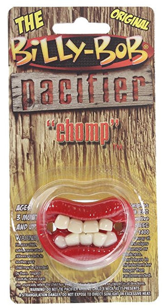 - This Billy Bob Chomp teeth pacifier includes a silicone orthodontic nipple. The pacifier features large, red, puckered lips. Its great for parents with a sense of humor, brighten up your family photos by giving your baby a silly face with this pacifier.Pacifier Has Silicone Orthodontic Nipple