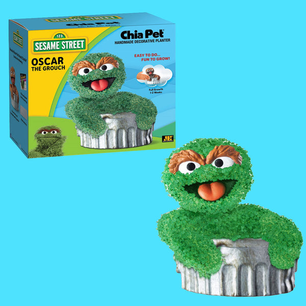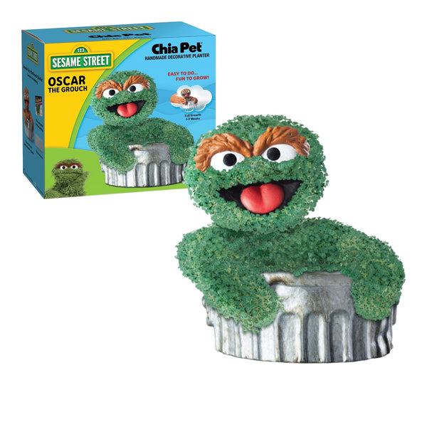 - Celebrate you love for Sesame Street with this Sesame Street Oscar the Grouch Chia Pet! Each handmade decorative planter comes to life in days, with full growth in 1-2 weeks using the simple included instructions.EVERYTHING YOU NEED IN ONE: Includes a unique pottery planter, convenient plastic drip tray and chia seed packets for 3 plantings.