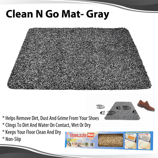 - Clean N Go non slip floor entryway clean step acrylic door mat 30"(L) x 19"(W) (grey) uses unique microfiber that clings to dirt and water on contact, wet or dry.Highly Absorbent – Quickly traps moisture and dirt to keep your floors clean.