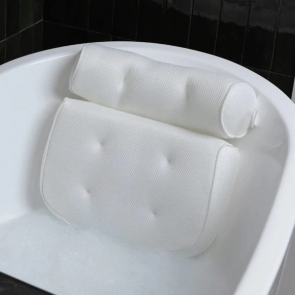 - This bath pillow is designed to provide ergonomic support for the head, neck, and shoulders during bathing. It features a plush, cloud-like cushion with a soft mesh surface that molds to the body and tub for maximum comfort.Luxurious Comfort: Premium memory foam and soft 3D mesh cover provide plush, cloud-like support for head, neck, and shoulders, enhancing relaxation.