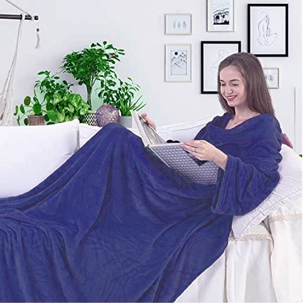 - Stay warm and cozy with the Cuddlee Blanket With Sleeves in soothing blue. Designed for relaxation, this super-soft fleece blanket features built-in arm sleeves for added warmth and convenience. Whether on the porch or snuggled on the couch, stay comfortable and relaxed with this versatile blanket.Stay warm and cozy with this soft fleece blanket in a beautiful blue color.
