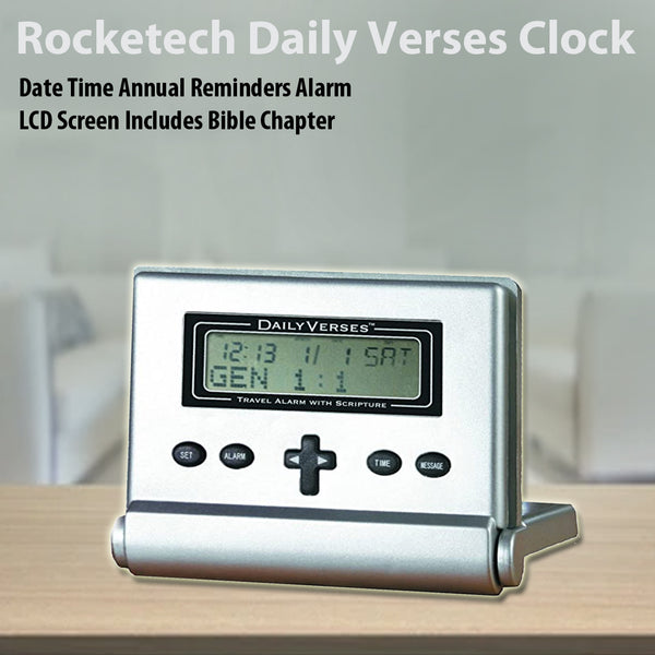 - Stay inspired throughout your day with the Rocketech Daily Verses Clock. This beautifully designed clock combines functionality with motivation, featuring a fresh, uplifting Bible verse each day to encourage and uplift your spirit.Daily Inspiration: Each day greets you with a new uplifting verse, perfect for starting your day on a positive note.