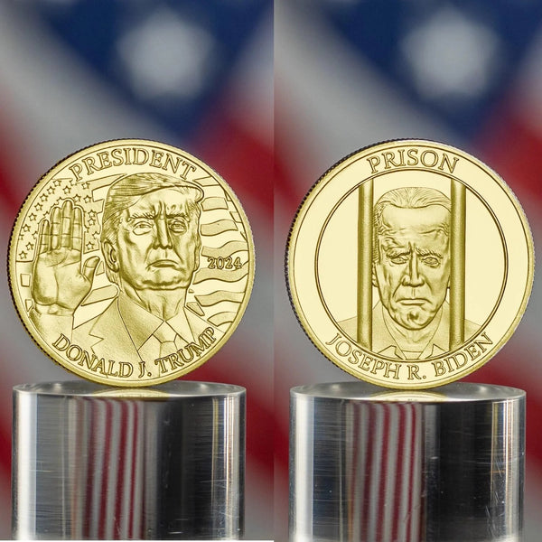 - Make a bold statement with the Donald Trump: President or Prison – Gold Edition collectible coin. This eye-catching, gold-layered piece sparks conversation and captures a defining moment in modern political history.Historical Keepsake: Captures a moment in political history, making it a valued addition to any memorabilia collection.