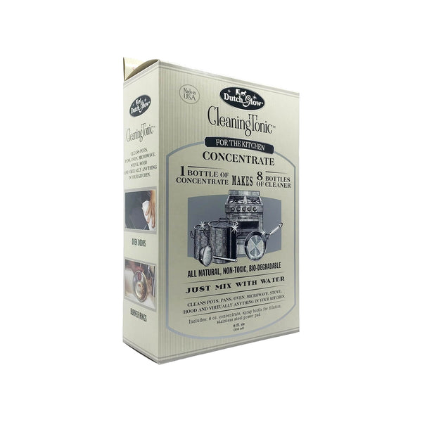 - The Dutch Glow Cleaning Tonic is a powerful, all-natural cleaner designed to tackle tough grease, grime, and dirt in your home. Made from Amish wood milk formulas, it’s safe to use on various surfaces and leaves behind a sparkling, streak-free finish. Perfect for cleaning kitchen counters, stovetops, and more, this concentrated formula cuts through stubborn messes with ease, without the need for harsh chemicals.Concentrated 8 fl oz bottle for long-lasting use and effective cleaning power.