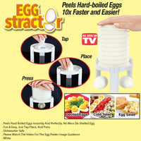 - Peel hard-boiled eggs effortlessly with the Eggstractor Egg Peeler in stylish white. This innovative tool takes the hassle out of peeling eggs, ensuring clean results without any mess, making it perfect for meal prep or your favorite recipes!Easy to Use: Simply place the hard-boiled egg in the Eggstractor, press the handle, and watch the shell come off effortlessly.
