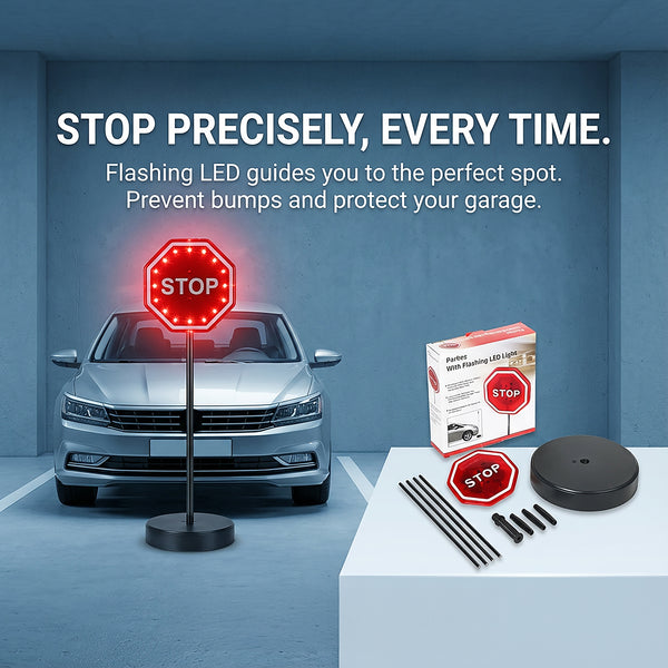 - Avoid garage bumps with the Flashing LED Light Parking Stop Sign—bright, durable, wall-mountable, and easy-to-install parking aid.Flashing LED Alert: Bright lights provide clear visual guidance while parking.