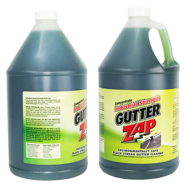 - Gutter Zap cleans black streaks off gutters caused by electrostatic bonding. Simply wet down the gutter, spray on Gutter Zap with your favorite chemical injector and rinse off with garden hose pressure, light brushing with a soft brush is required on heavily soiled areas.Removes heavy soils, dirt and other industrial stains.