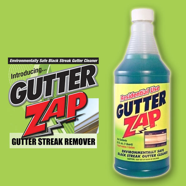 - Gutter Zap is an environmentally safe cleaning solution specifically designed to remove black streaks and stains from residential gutters. This powerful formula comes in a convenient 32 fl oz (1 quart) bottle, making it easy to restore your gutters' appearance without harsh chemicals.Eco-Friendly Formula: Gutter Zap is designed to be environmentally safe, making it a responsible choice for homeowners concerned about the impact of cleaning products on the environment.