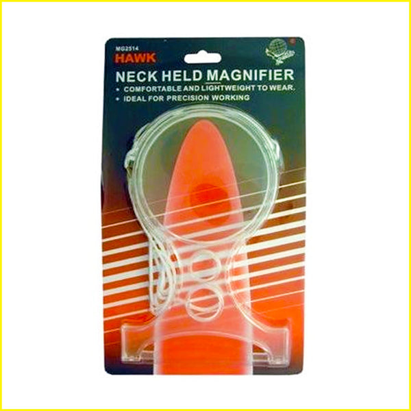 - The Hawk MG2514 Neck Held Magnifier offers hands-free magnification for various tasks, from reading small print to detailed crafts. With its comfortable neck strap design, it provides convenience and ease of use for prolonged periods.Popular with crafters