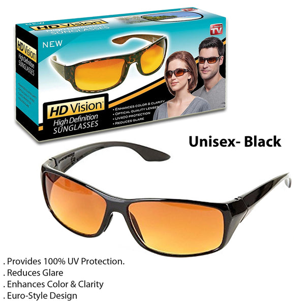- HD Vision Sunglasses in Black are designed for both men and women, providing high-definition clarity and UV protection. Their sleek, unisex style ensures a comfortable fit and a modern look, making them a versatile accessory for any outdoor activity.High Definition Vision: Experience enhanced clarity and visual acuity with HD Vision Sunglasses, designed to provide a crisp and vivid view.
