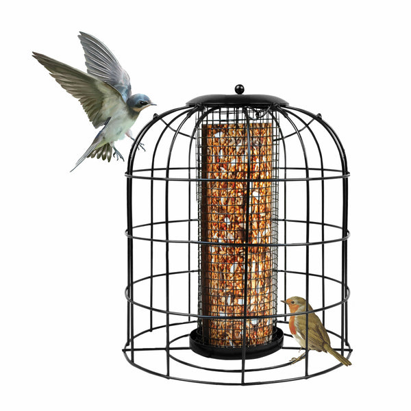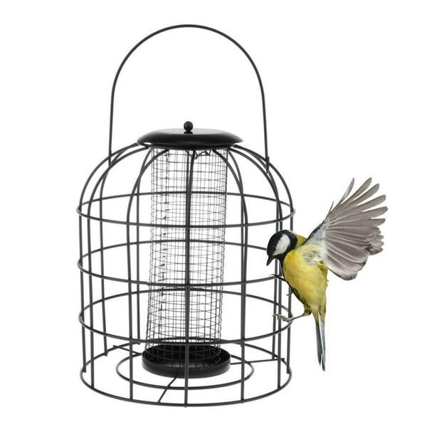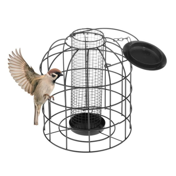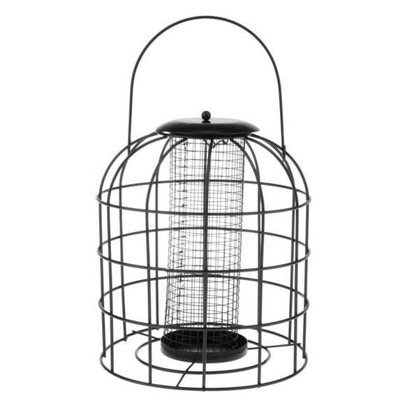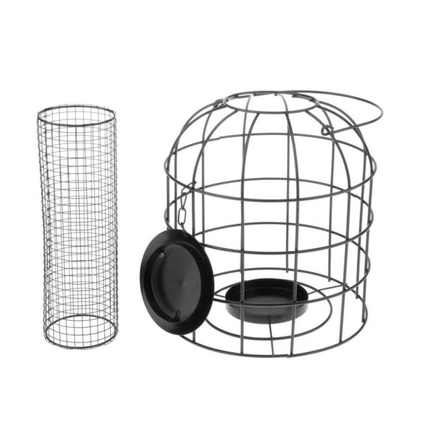 - Iron wire bird feeder keeps seeds safe from squirrels.Durable iron wire cage design keeps seeds safe from squirrels.