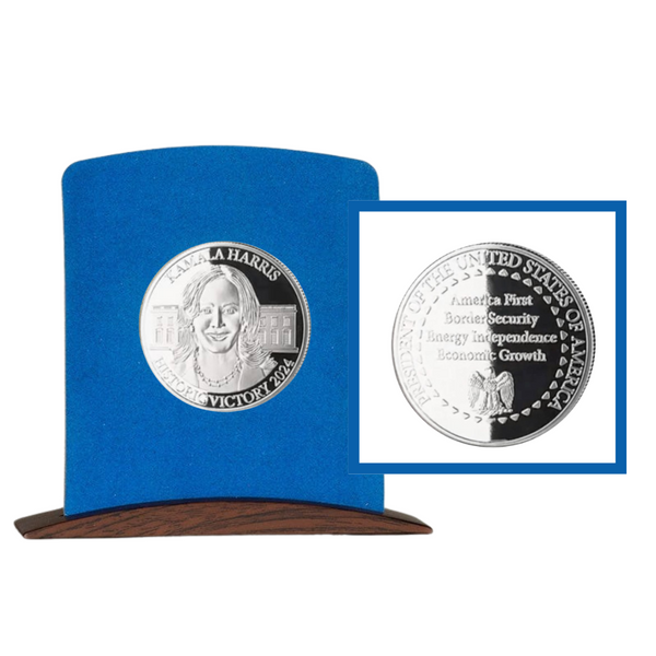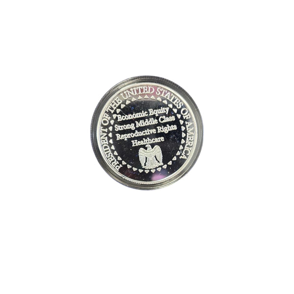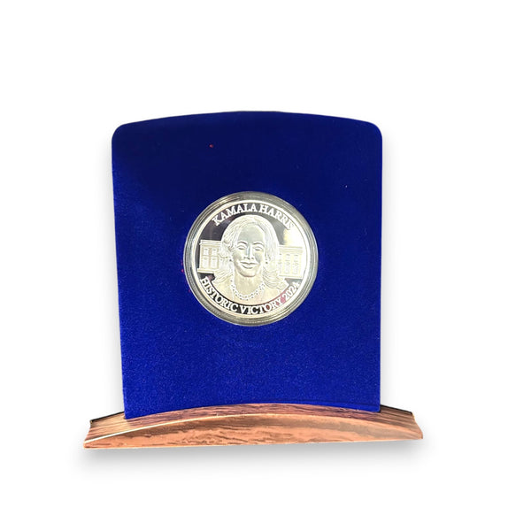 - Celebrate history with the Kamala Harris 2024 Victory Commemorative Coin, a stunning silver-plated collectible honoring a groundbreaking moment in American politics. This limited-edition keepsake includes a protective display case and a certificate of authenticity.Silver-Finished Collectible: Crafted with a silver-finished coating, this coin commemorates Kamala Harris’s 2024 political legacy, perfect for political memorabilia enthusiasts.