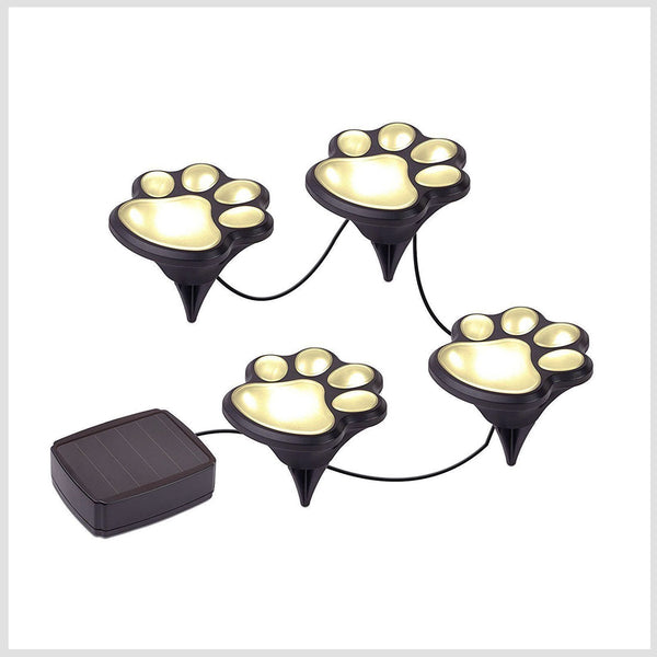 - Decorate your garden with LED Solar Paw Print Lights – Set of 4—solar-powered, weather-resistant, fun, and energy-efficient outdoor lighting.Pet-Themed Design: Cute paw print pattern adds charm to pathways and gardens.
