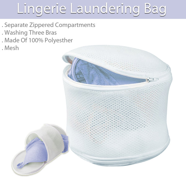 - Lingerie Laundering Bag Maintain the shape of your bras while laundering them. Three separate zippered compartments for washing three bras at a time. It helps prevent bra hooks from snagging other clothing.Protective Laundering: Safeguard your delicate lingerie, especially bras, during washing with this specialized lingerie laundering bag.