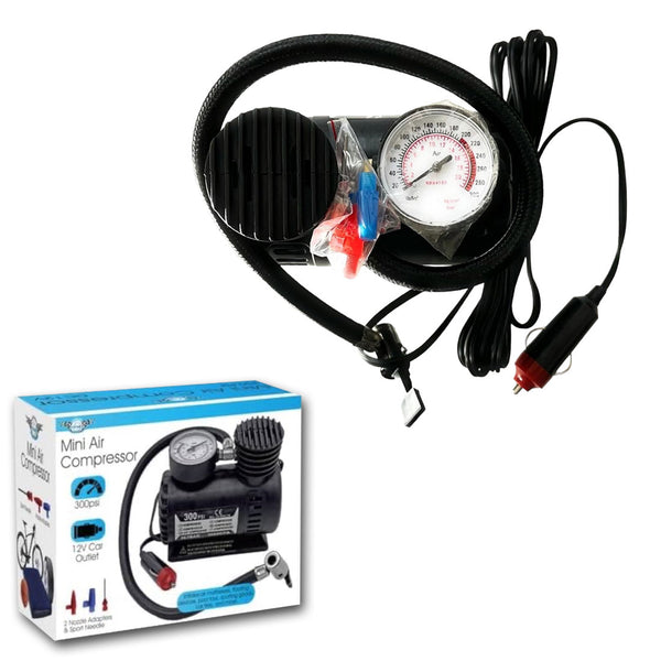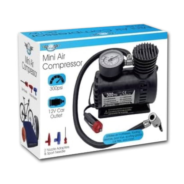 - This compact but powerful 300 PSI Mini Air Compressor inflates air mattresses, floating devices, pool toys, sporting goods, car tires, and more.Suitable for inflating air mattresses, pool toys, sports equipment, car tires, and more.