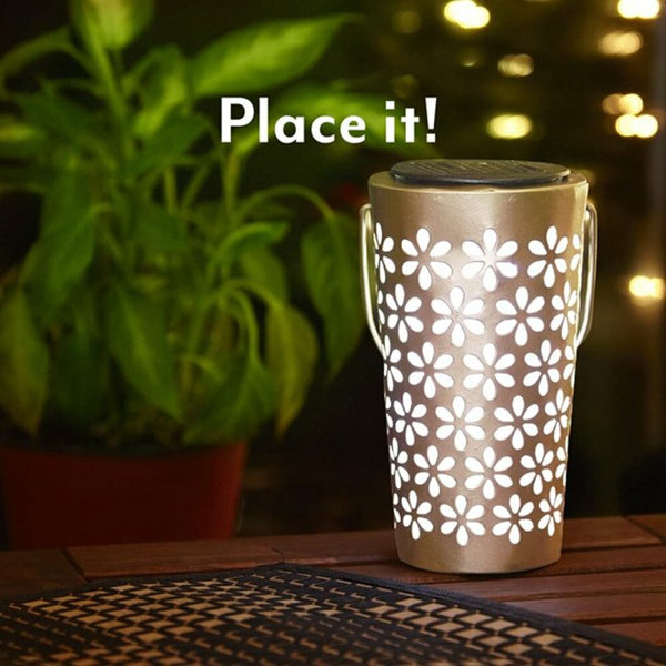 - Light up your evenings beautifully with the Night Fall 3-in-1 Solar Light Set of 2, versatile hammered metal lanterns featuring elegant floral cutouts for a sophisticated glow on patios, gardens, decks, or landscapes.3-in-1 Versatile Placement: Stake into lawns, hang from hooks, or sit on tables—adapts to patios, gardens, decks, or pathways for customizable lighting without tools.