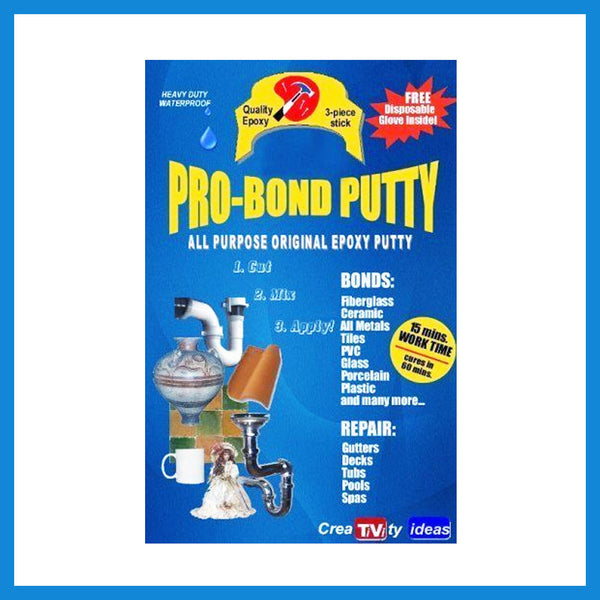 - Pro Bond Epoxy Putty is a versatile and durable solution for a wide range of repair and bonding needs, perfect for both indoor and outdoor applications. This easy-to-use putty sets quickly and forms a strong, permanent bond that can be sanded, painted, or drilled once cured.Strong, permanent bond suitable for a variety of materials including wood, metal, plastic, and ceramics.