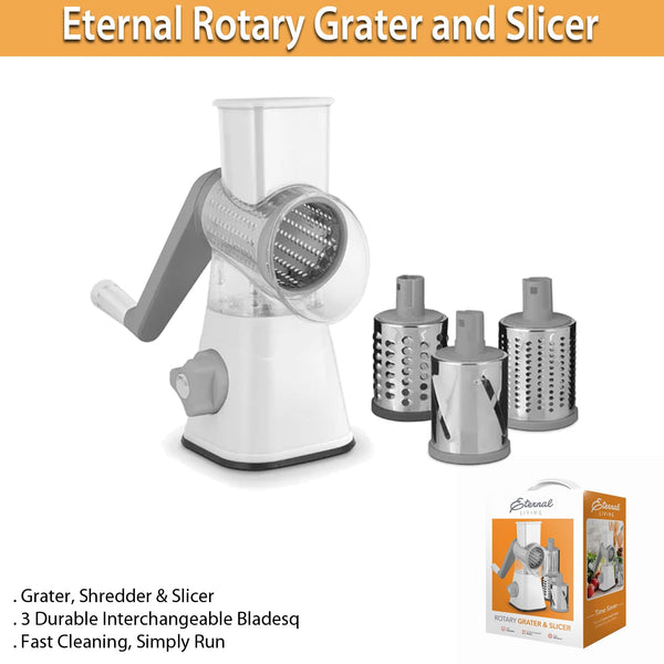 - Eternal Veggie Slicer – 3 Blades for Quick, Clean Cutting & ShreddingErgonomic Design: The comfortable handle and rotary mechanism provide a secure grip, allowing for smooth and efficient food preparation.