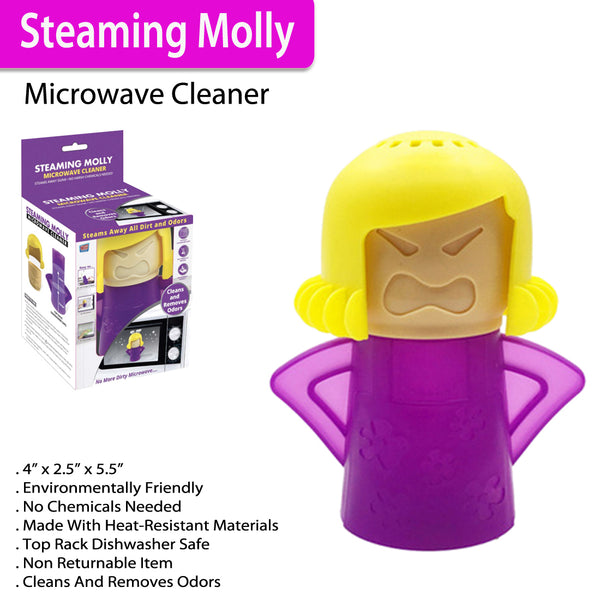 - The Steaming Molly Microwave Cleaner is a convenient and innovative solution for effortlessly removing dirt and grime from your microwave.Effortless Cleaning: Steam loosens stubborn food and grease for quick cleanup.