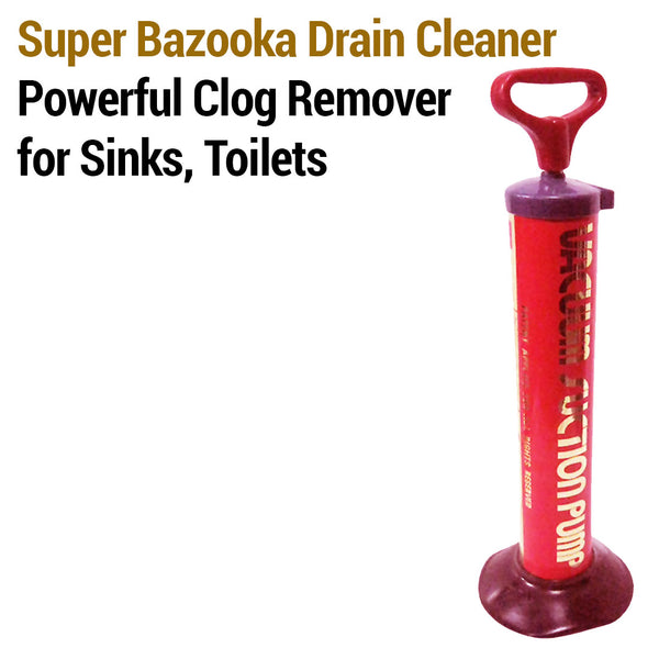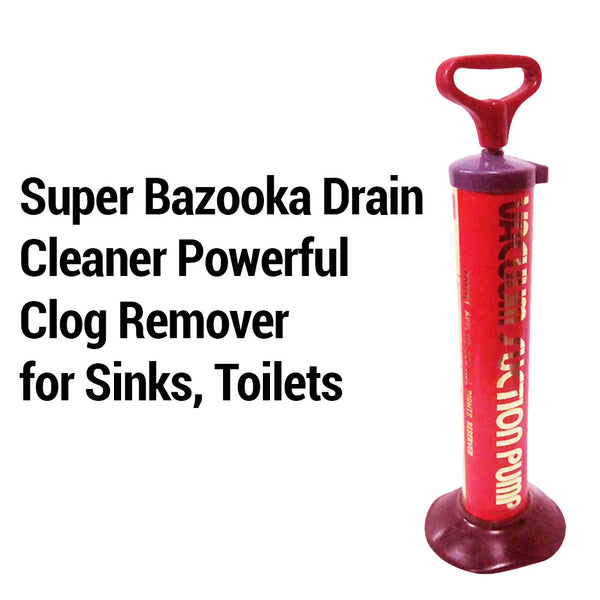 - Super Bazooka—heavy-duty plunger clears tough drain clogsPowerful Suction: Clears clogs in sinks, toilets, and drains by dislodging hair, grease, and debris with strong, targeted suction in just a few pumps.