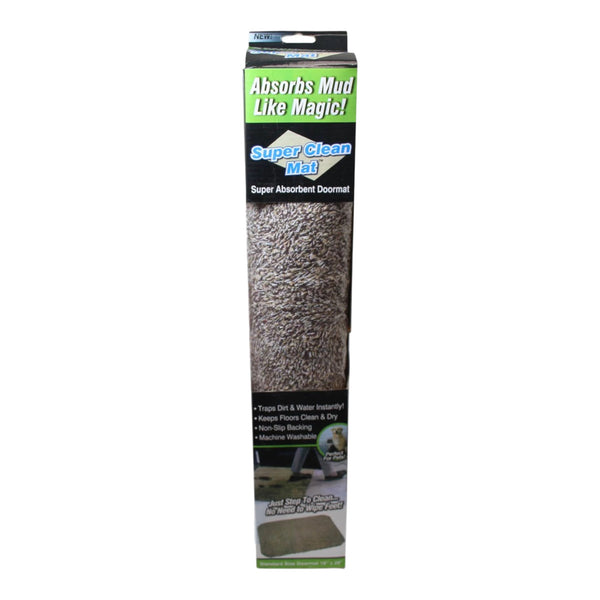 - The Super Clean Mat in Beige is a highly absorbent door mat measuring 18" x 28", designed to trap dirt and moisture effectively. Its stylish and functional design makes it perfect for any entryway, providing superior protection for your floors.Super Absorbent – Quickly absorbs water and dirt, keeping your home clean and dry.