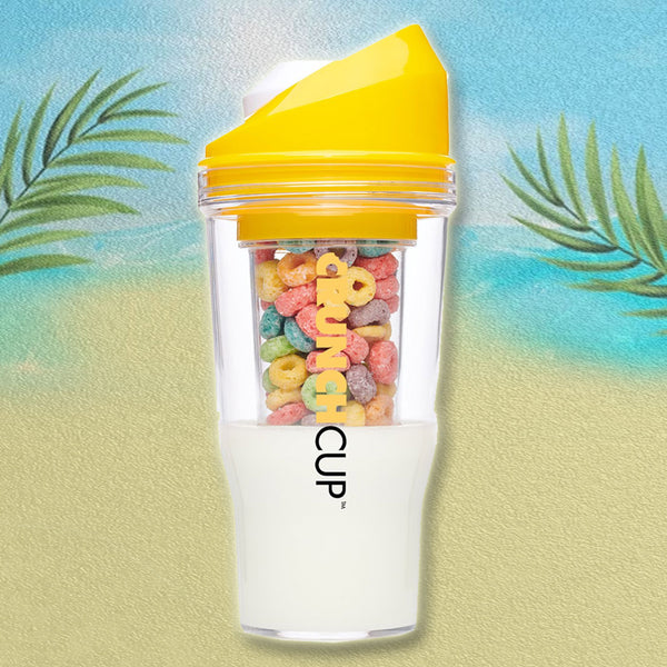 The CrunchCup XL is a convenient, portable cereal cup designed to keep your favorite cereal and milk separate until you're ready to enjoy them. With its innovative design, you can easily sip and crunch on the go, making breakfast or snack time a breeze wherever you are.The perfect companion for any student, parent, or business professional who wants to take their cereal to-go.