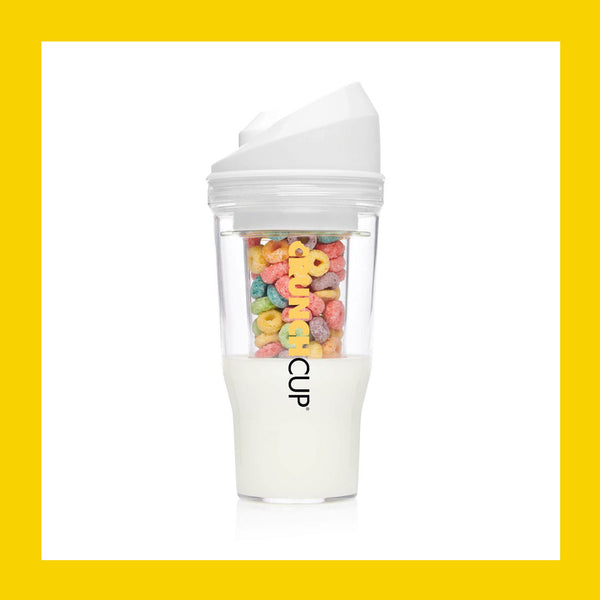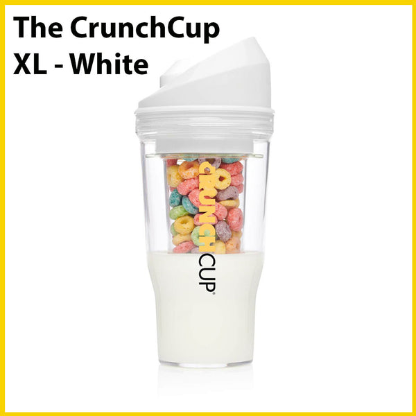 - The CrunchCup XL is a convenient, portable cereal cup designed to keep your favorite cereal and milk separate until you're ready to enjoy them. With its innovative design, you can easily sip and crunch on the go, making breakfast or snack time a breeze wherever you are.The perfect companion for any student, parent, or business professional who wants to take their cereal to-go.