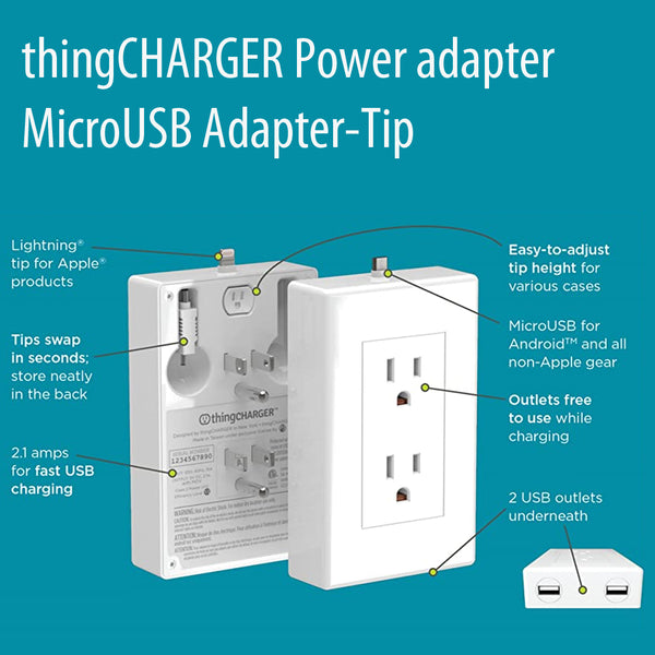 - Includes MicroUSB adapter tip for non-Apple devices like Samsung, LG, HTC, and more