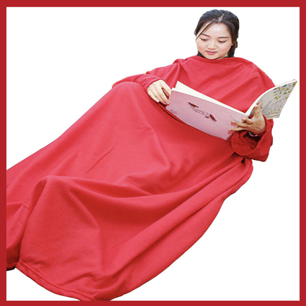 - The Warmie Cozy Blanket with Sleeves in red offers both warmth and mobility, allowing you to stay snug while still having your hands free. Its plush fabric and vibrant color make it a comforting and stylish addition to your relaxation routine, perfect for cozying up on chilly evenings.Stay warm and hands-free with its super-soft fleece material.