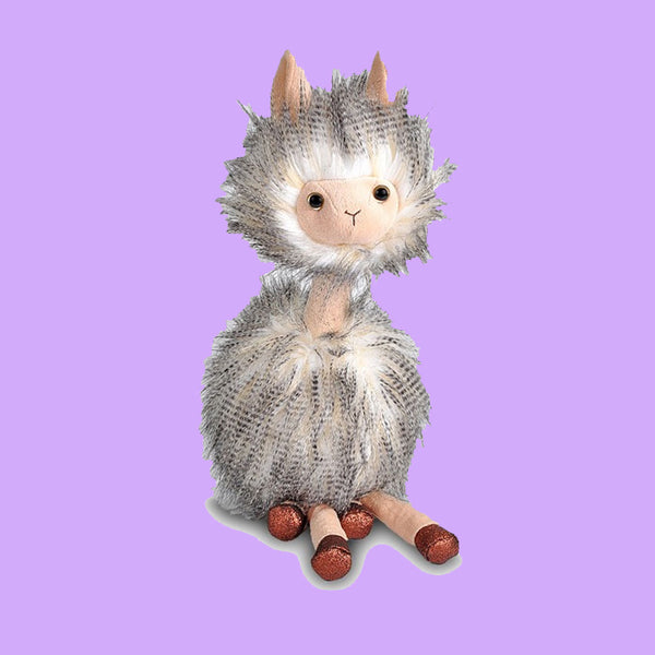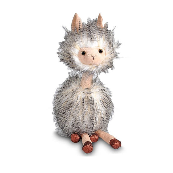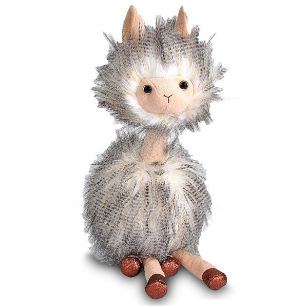 - Measuring approx. eighteen inches this adorable llama is ready for the fluffiest snuggles you’ve ever had. Not only is it over the top fluffy it also features sparkly feet and iridescent eyes! The contrast between this stuffed llama’s fluffy body and itty-bitty limbs just add to its whimsy and charm.Made with Child Safe Materials